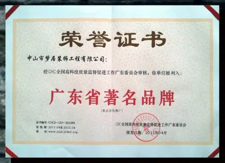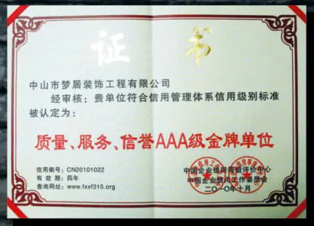 經過二十年的發展和壯大,我們的業務已遍布全國八省百余城市,公司憑著創新的營銷理念、先進的管理團隊、優質的工程質量,已發展成為裝飾行業的新標桿。目前我們擁有高端的專業設計公司、工程管理公司、先進的木業制造公司,專業打造集設計、施工、建材選購、倉儲配送中心、售后服務于一體的完善服務體系。依托公司的整體實力,不斷銳意進取,迅速成為裝飾界的領軍企業,多次受到同行協會及消費者的嘉獎和好評。并于2004年3月成為中山市消委會“誠信加盟單位”;2006年分別榮獲“廣東省消費者滿意單位”、“ICDA中國家庭裝飾服務中心”、“全國優秀裝飾企業”,2010年分別獲得“全國十佳誠信單位”、“質量、服務、信譽AAA級金牌單位”,2011年分別榮獲“廣東省著名品牌”、“全國住宅裝飾裝修行業百強企業”,2012年被評為“廣東省守合同、重信用企業”等。在務實國內市場做大做強的同時,也不斷開辟國外市場,走出去為全世界服務是我們的新目標。我們一直在為客戶尋求一個更好的生活表現形式,一直在探求一種更舒適的家居感覺,我們秉承“合法、正面、共贏”的經營理念,綠色環保裝修成為我們行業中的亮點,“低調、務實、執著”的做事風格,使我們在行業中不斷創造一個又一個的典范。“用心筑夢,傳世之居”成為我們畢生的追求,我們用真心、愛心、誠心筑起一道道生命中亮麗的風景線。