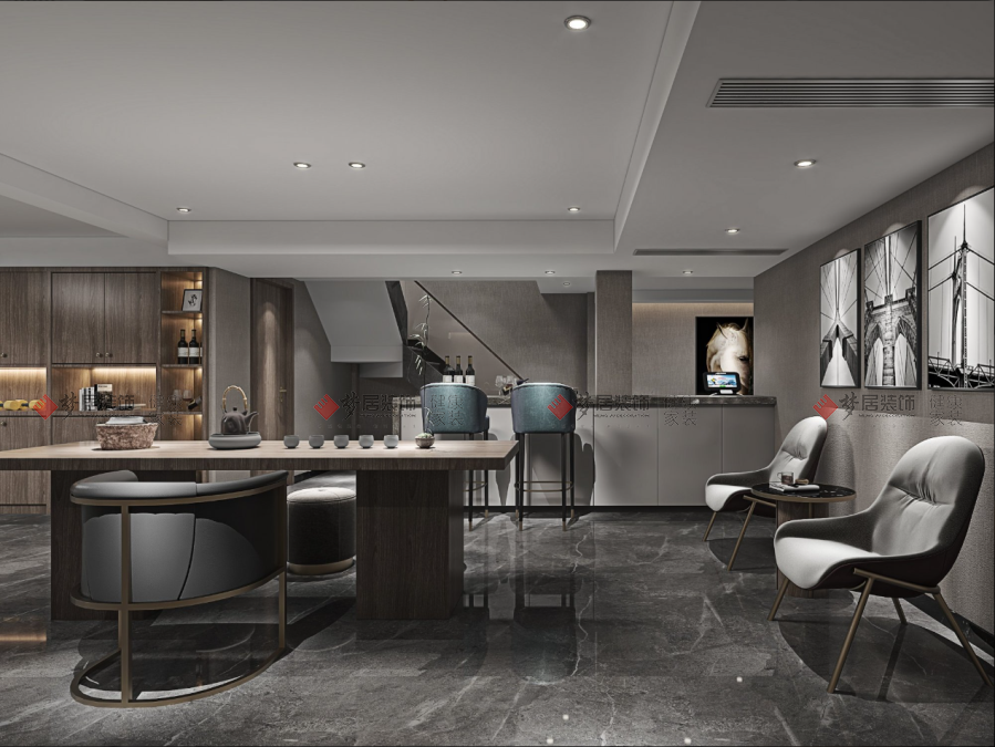 設計說明:這套現代風格別墅,以原木棕色為基調,突出現代感與高檔氛圍,致力于打造一個簡約大氣的風格空間;室內布局精心打造,細節之處注入藝術元素,讓空間更顯文藝與品質。線條分明、空間層次感強,用簡單的美學設計手法,就能打造出溫馨、和諧的宜居家園。愜意觀景落地大窗、開放式茶室、貼心套臥,旨在提升居住舒適感。客廳空間整體以白色、棕色為基調,地磚采用通鋪方式,搭配紋理感的地毯,瞬間營造出了大氣的質感;布藝沙發舒適而自由,時尚造型的背景墻讓整個空間的視覺更大氣。襯以休閑放松的閱讀角落,讓居者在舒適和藝術之間找到平衡。茶室設計營造出東方美學韻味,簡潔、大方的空間設計質感滿滿,長方形茶桌勾勒出方寸間的規矩方圓,為使用者帶來更好的社交體驗。主臥散發出沉穩、簡潔、安然的味道,深色沉穩的木地板傳遞出自然溫暖,空間回歸居住本身,讓美和功能達到平衡。 |