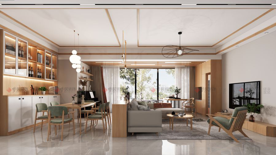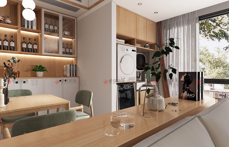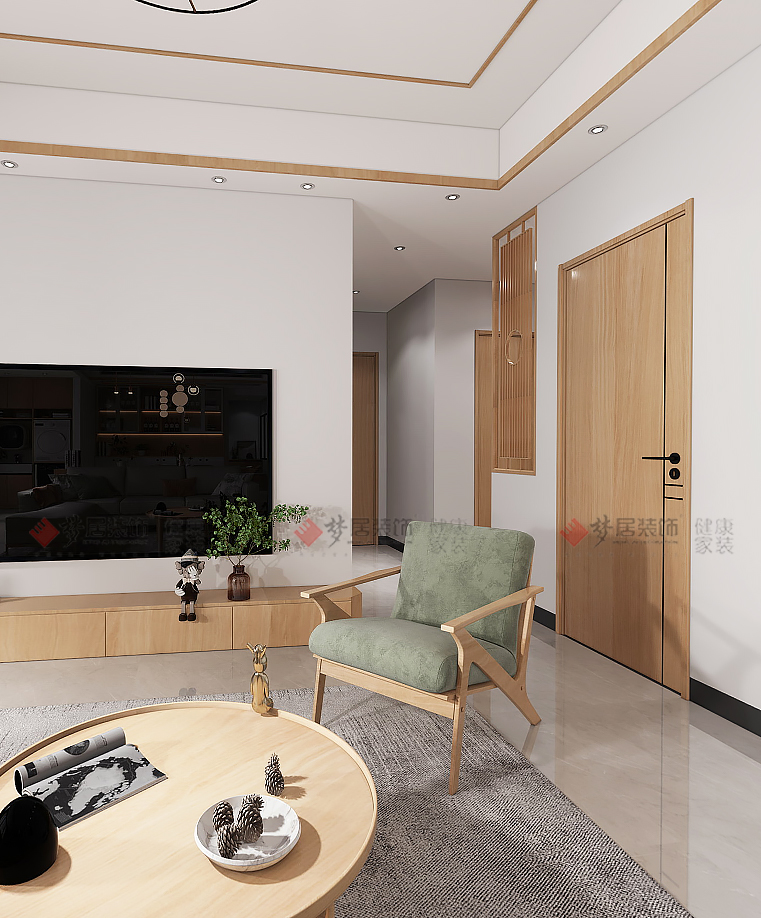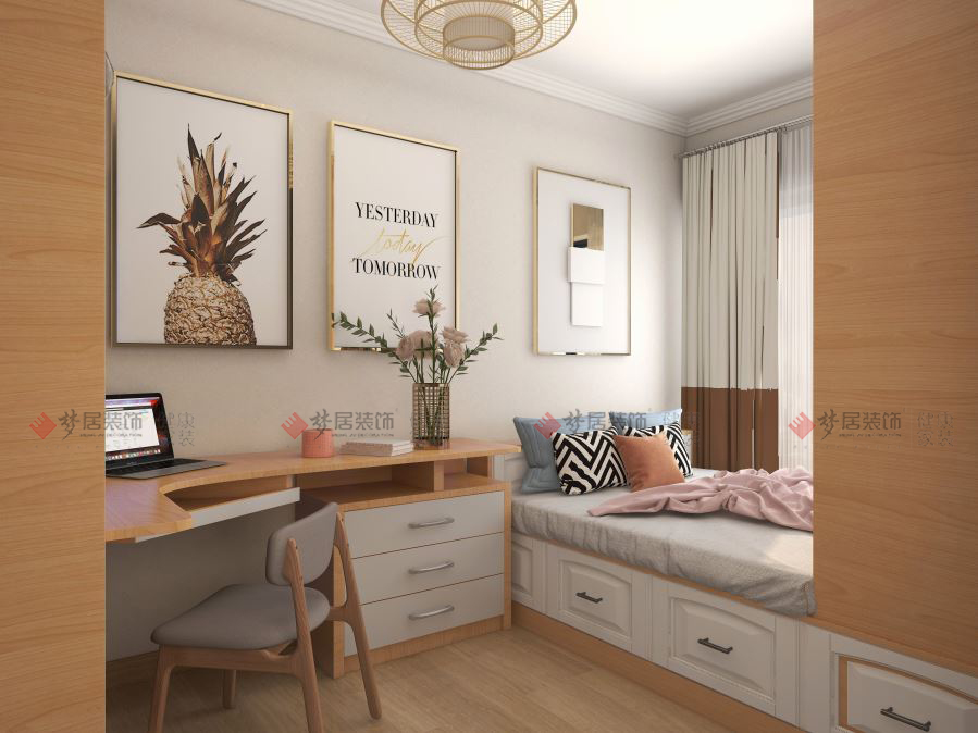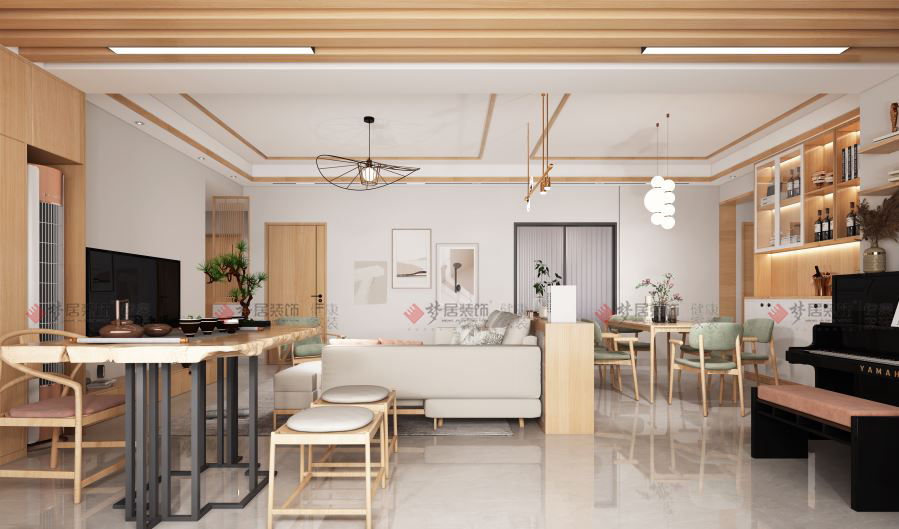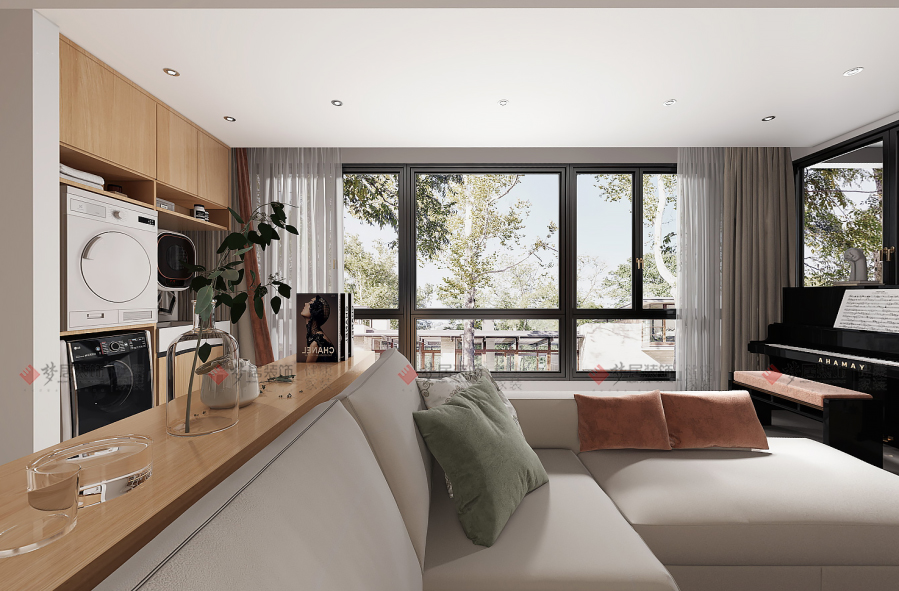 設計說明:原木為基調打造的家居空間,簡樸自然。入戶頂立式分層木柜實現超強收納與隔斷功 能,實木質感的餐桌椅自然清新。客餐廳使用矮柜進行分隔,空間各自獨立又不失 通透美感。L型布藝沙發搭配原木茶幾,放松、舒適,充滿生活感。陽臺并入客廳, 規劃出洗衣區與休閑區,實用又美觀;鋼琴區為生活增添一份優雅浪漫的儀式感。玻璃、黃銅的點綴,在整體的清新簡潔上,增添了精致質感。整體空間延續簡約原木風 ,拋卻繁雜,干凈自然。主臥清新簡雅,原木的樸實質感,綠植的清新自然,金屬燈具精美別致。兒童房整體簡約又溫馨,子母床設計節省空間,環保耐用的木材定制安 全又放心;童趣可愛的細節設計,給孩子一個美好活力的童年時光。 |