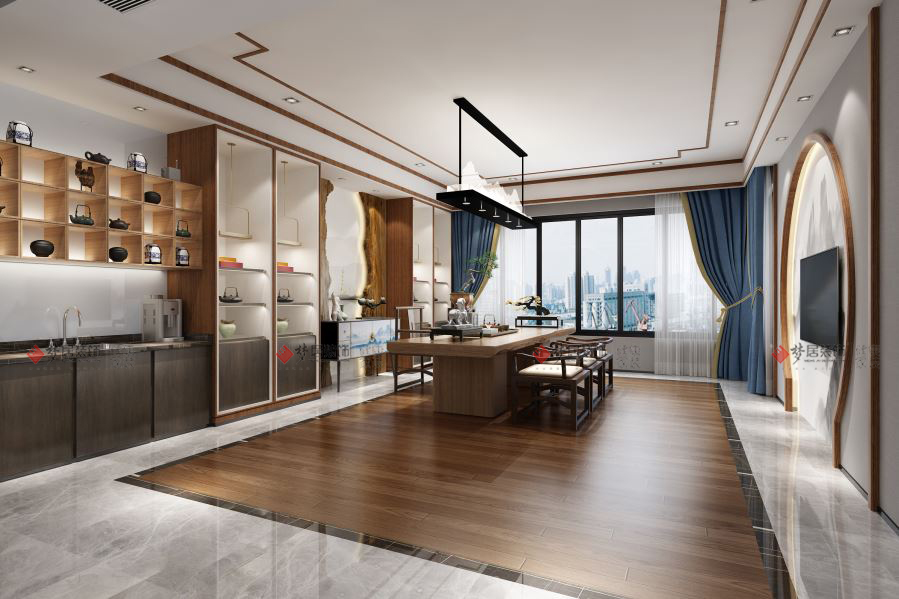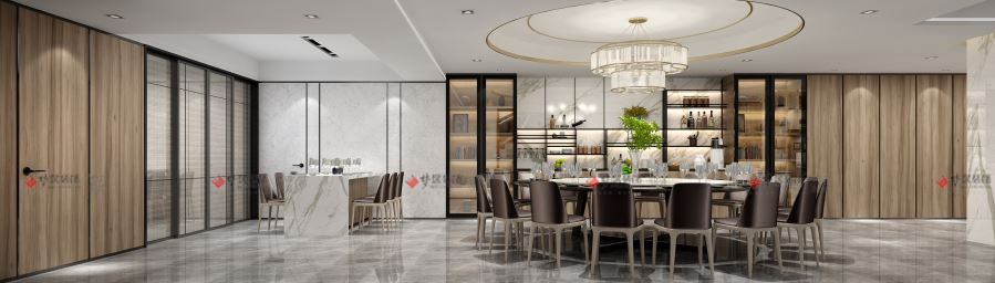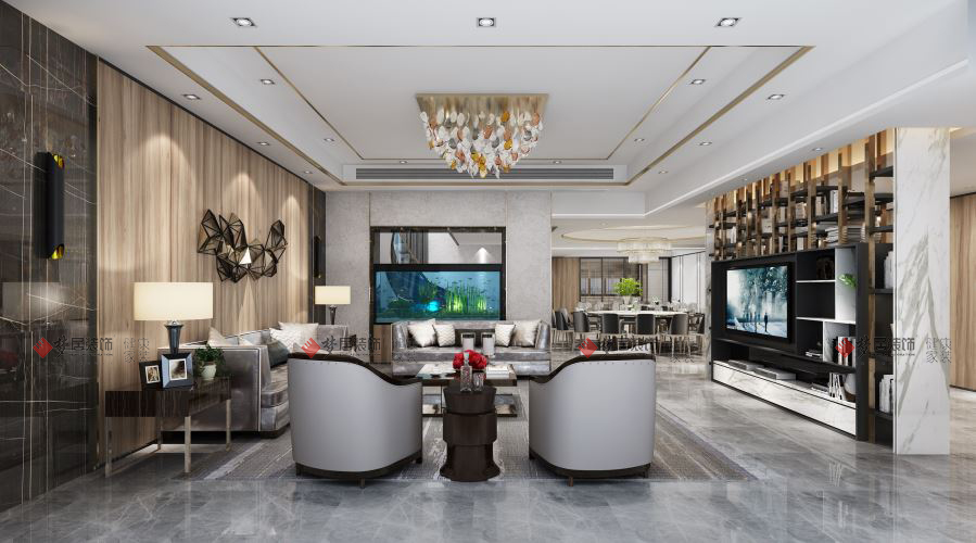 設計說明:色彩運用選取對于港式風格裝修的塑造極為重要,空間以灰色、木色為主色調,營造整體舒適自然的氛圍;黑色作為點綴,賦予空間高雅穩重的質感;工藝材質上多采用大理石與拉絲不銹鋼作為點綴,輕奢華麗。 空間造型美觀大方,軟裝搭配極為出彩,細節處的打造流露出生活的精致情調。水晶燈飾、金屬擺件、玻璃制品、簡約抽象的現代畫作等現代輕奢元素的融入,用極富個性的色彩與時尚細膩的質感營造出空間“奢華大氣”的感受,滿足現代年輕家庭的輕奢需求傳遞“輕奢時尚”的生活理念。 |