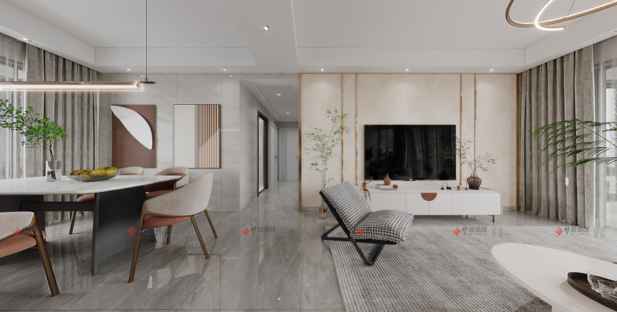 設(shè)計(jì)說(shuō)明:現(xiàn)代風(fēng)格家居的空間設(shè)計(jì)結(jié)構(gòu)特別明顯,整體的空間利用率也很高,設(shè)計(jì)師注重舒適與創(chuàng)新,選用的家具以簡(jiǎn)約為主,但又不失色彩的變化。在家具配置上,淺色系列家具獨(dú)特的光澤使家具倍感時(shí)尚,具有舒適與美觀并存的享受。地面材料以石材為主,空間木色用于局部作為裝飾,以綠色植物為襯托,使空間愜意又舒適,為業(yè)主打造出一個(gè)兼具現(xiàn)代精簡(jiǎn)時(shí)尚與溫馨的室內(nèi)空間。 |