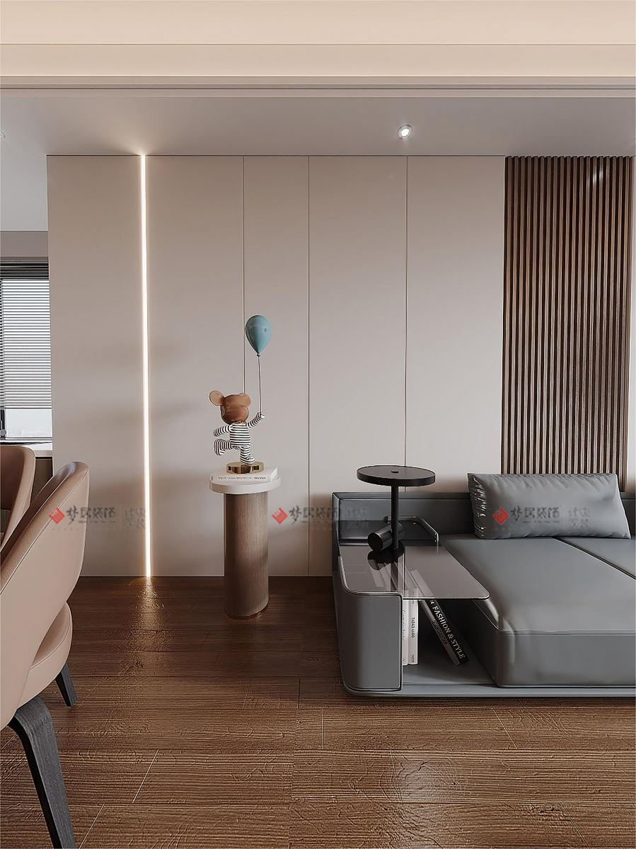 設(shè)計(jì)說明:本案業(yè)主對生活品質(zhì)、時(shí)尚都有著自己獨(dú)特的追求,設(shè)計(jì)師以業(yè)主及家人的生活習(xí)慣、喜好為引導(dǎo),根據(jù)戶型結(jié)構(gòu)把控整體空間設(shè)計(jì),在使空間功能、形式得以滿足的同時(shí),為業(yè)主打造個(gè)性品位的舒展,于細(xì)節(jié)處還原空間的溫度與精致。大塊的巖板做造型裝飾和木地板搭配,為空間帶來沉穩(wěn)優(yōu)雅的氣質(zhì);貫穿整體空間的線型燈帶帶來精致時(shí)尚的觀感,燈光與不同材質(zhì)的組合搭配呈現(xiàn)輕奢質(zhì)感,將氛圍感拉滿,打造出舒適浪漫的現(xiàn)代精致美宅。 |