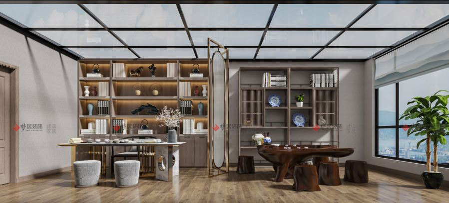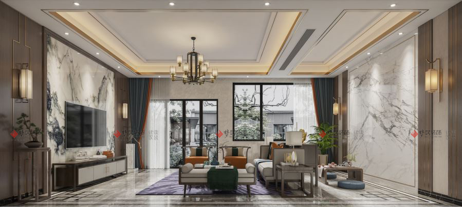 設計說明:輕奢新中式家居設計,為現代中式家居注入了一股時尚氣息,使新中式家居更趨于實用,更富現代感。這不僅是古典家居情懷的自然流露,同時也展現了當代人對高品質生活方式的向往。 簡潔爽朗的金屬線條搭配黑胡桃木,格調高雅,質感十足。去除繁復雕飾的簡約中式風格燈飾及家具擺件,營造清雅含蓄的新中式空間,散發著濃郁的東方美學情調。集時尚、雅致韻味于一體的輕奢新中式設計風格在室內設計界掀起新一輪的流行浪潮,是一種美到讓人沉迷的時尚與仿雅 |