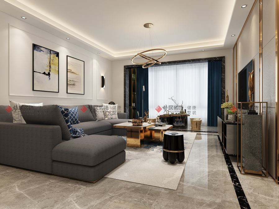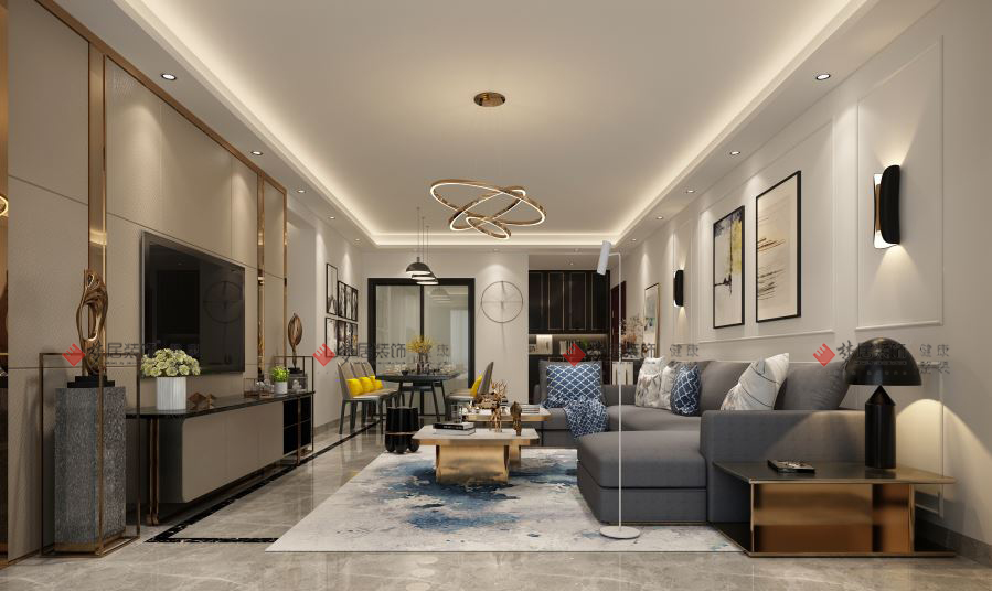 設計說明: 本設計案例為現代簡約格調, 整體以白色、灰色、咖啡色為主色調, 電視背景墻采用皮革硬包鑲嵌玫瑰金鏡面不銹鋼條進行裝飾, 線條流暢干練,造型簡約;地面運用當下流行的淺灰色全拋釉磚與墻面白色的乳膠漆形成對比, 不單調枯燥。 在燈光的?設計上,以點、線、面手法進行表現, 為整體空間的光影效果更富有層次感,明暗有度,更有格調。 在燈飾、飾品、掛件、掛畫、工藝品、家具、窗簾等軟裝配飾上,設計師花了不少心思去琢磨, 以一種樣板房的設計心態去做,必然會呈現出不一樣的設計效果,演繹高品質的居家生活環境! |