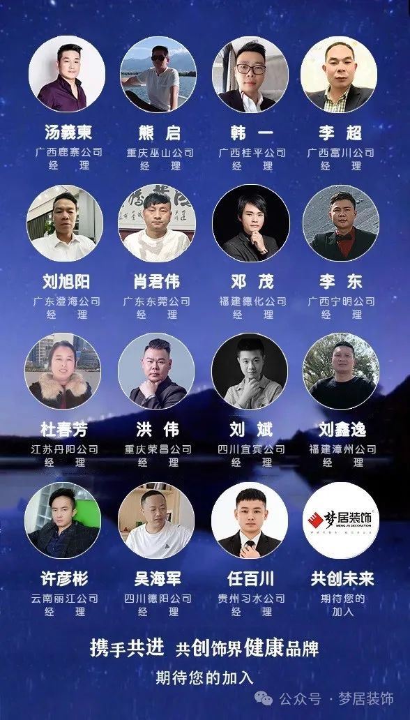 再次熱烈祝賀任總團隊成功牽手夢居!夢居秉承“共創共享共贏”的企業理念,面向全國空白市場尋找城市合伙人,期待更多志同道合的伙伴,加入夢居大家庭。牽手夢居,在未來的航程中奮楫篤行,為當地家裝市場帶來更健康舒適的家裝體驗與品質!共同開創奮進,共同為實現夢想家居而奮斗!