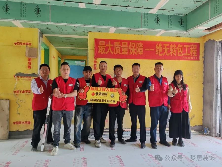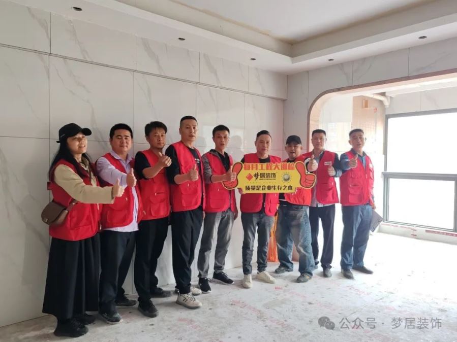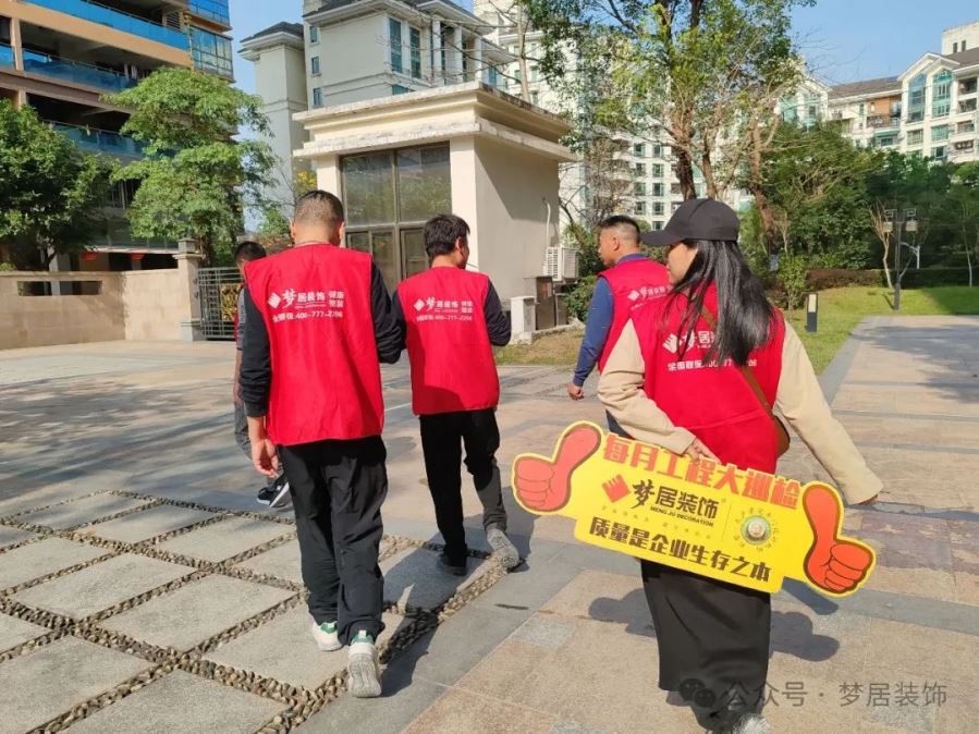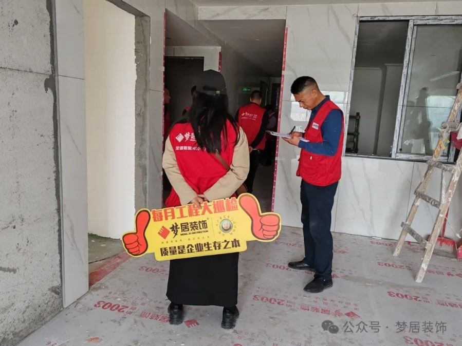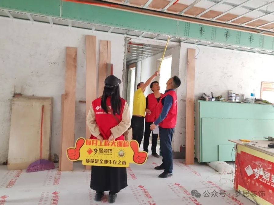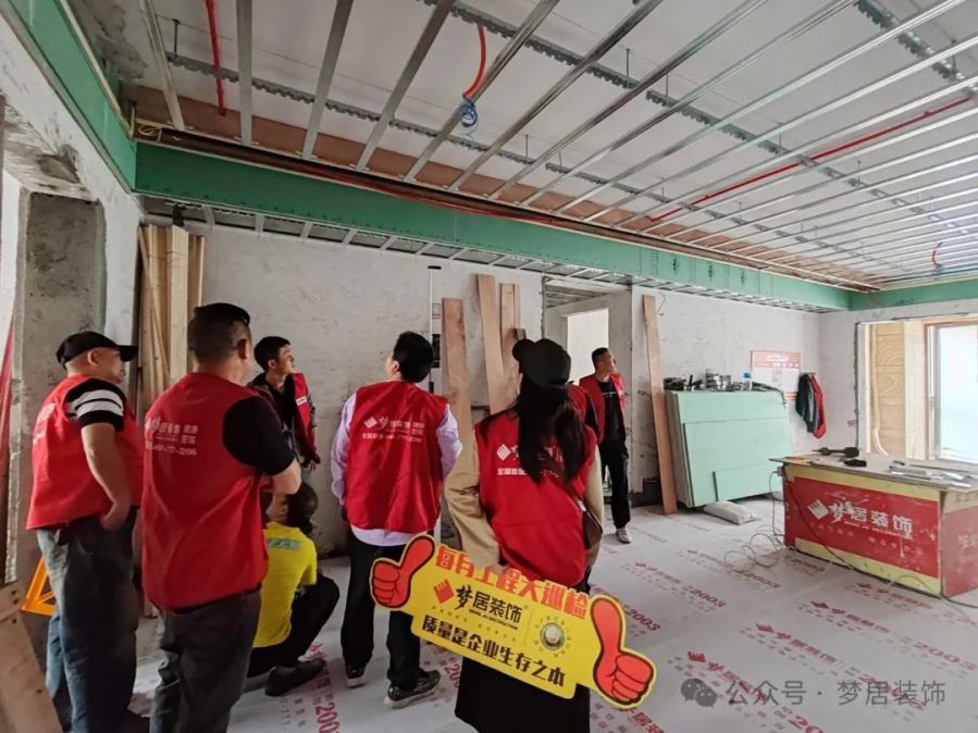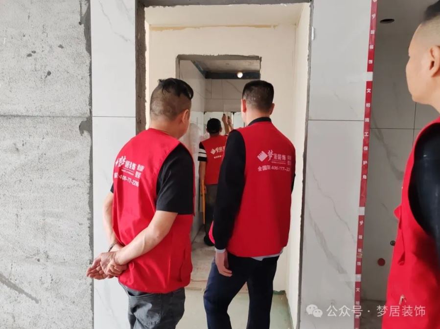 夢居每月工地大巡檢,共同監督解決施工過程中發現的問題,促進工程順利進行。細致完善的巡檢制度以及強化質量要求,進一步提高施工質量和效率,為裝修項目的順利進行提供有力保障,為業主愛家保駕護航!
