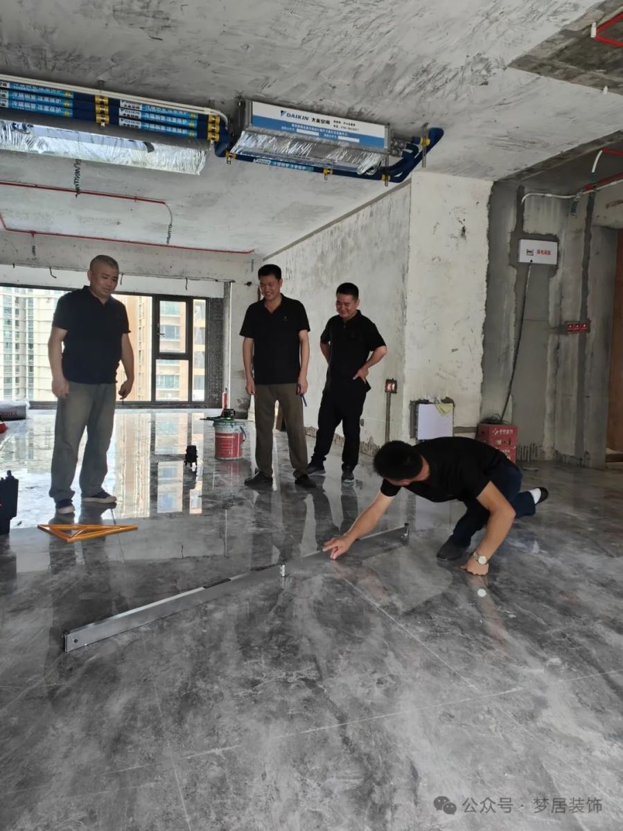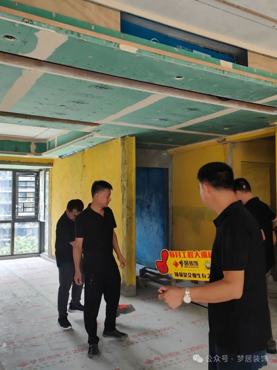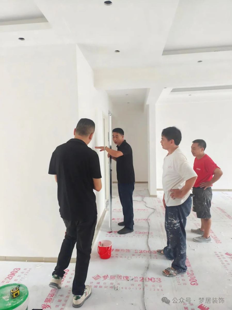 夢居裝飾將每一份細心和專注注入每一個家裝項目,緊盯工程品質,對在施工地常態化的日常巡查巡檢,從根本上保障客戶的美好生活質量,讓業主放心和安心。