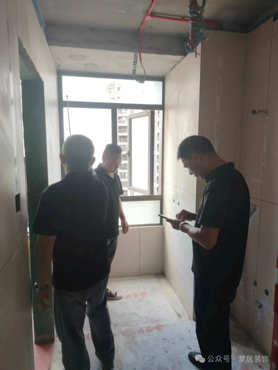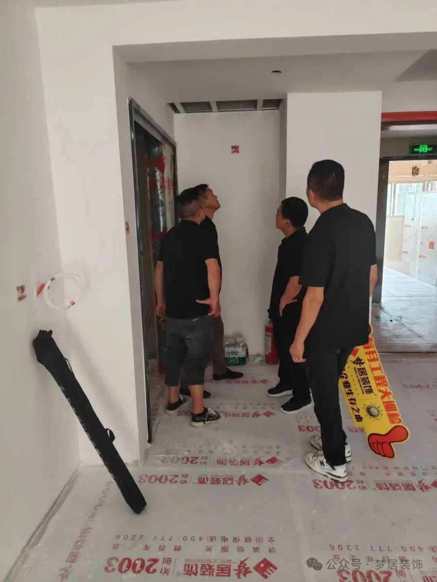 夢居每月工地大巡檢,緊盯工程品質,嚴格檢測驗收,保障施工質量。全過程的精細化用心,為業主舒適家居生活進行護航。