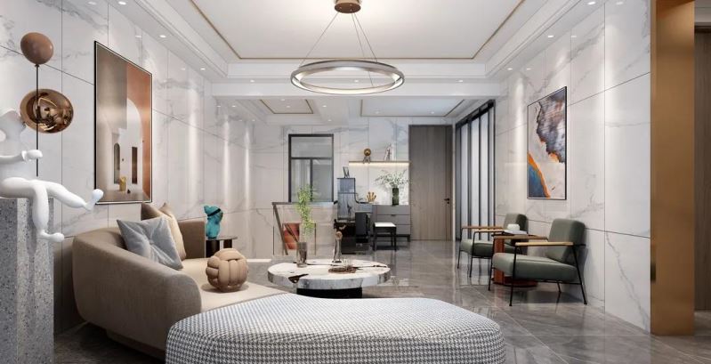 奢華石材的使用,提升了空間質感;細節的搭配,使整個空間溫馨舒適;雕塑擺件趣味性十足。