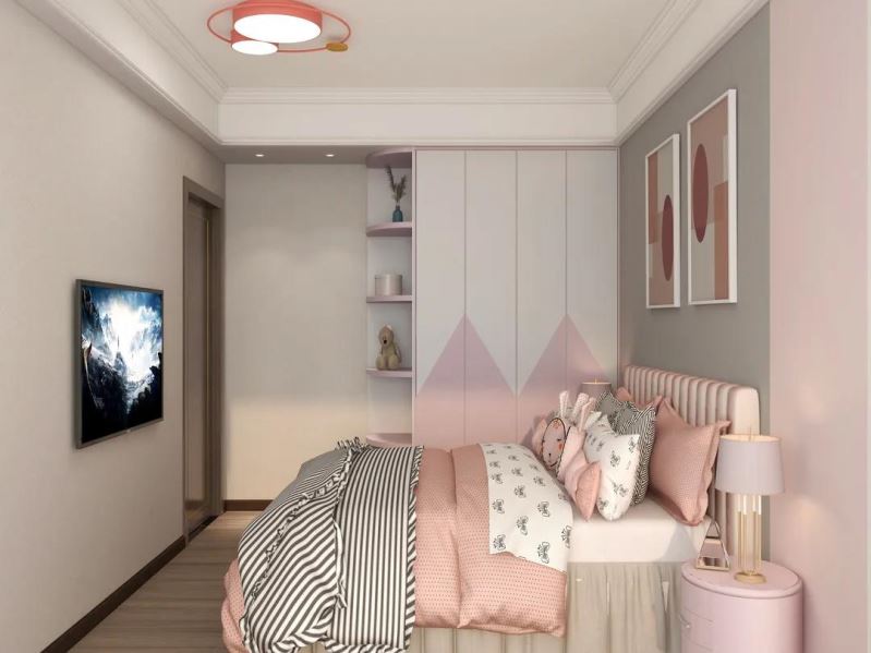 臥室裝修簡雅自然,搭配柔和溫馨的絲絨、布藝家具,木地板質感舒適;同色系色彩運用溫柔和諧,給人平和、治愈的居住體驗。