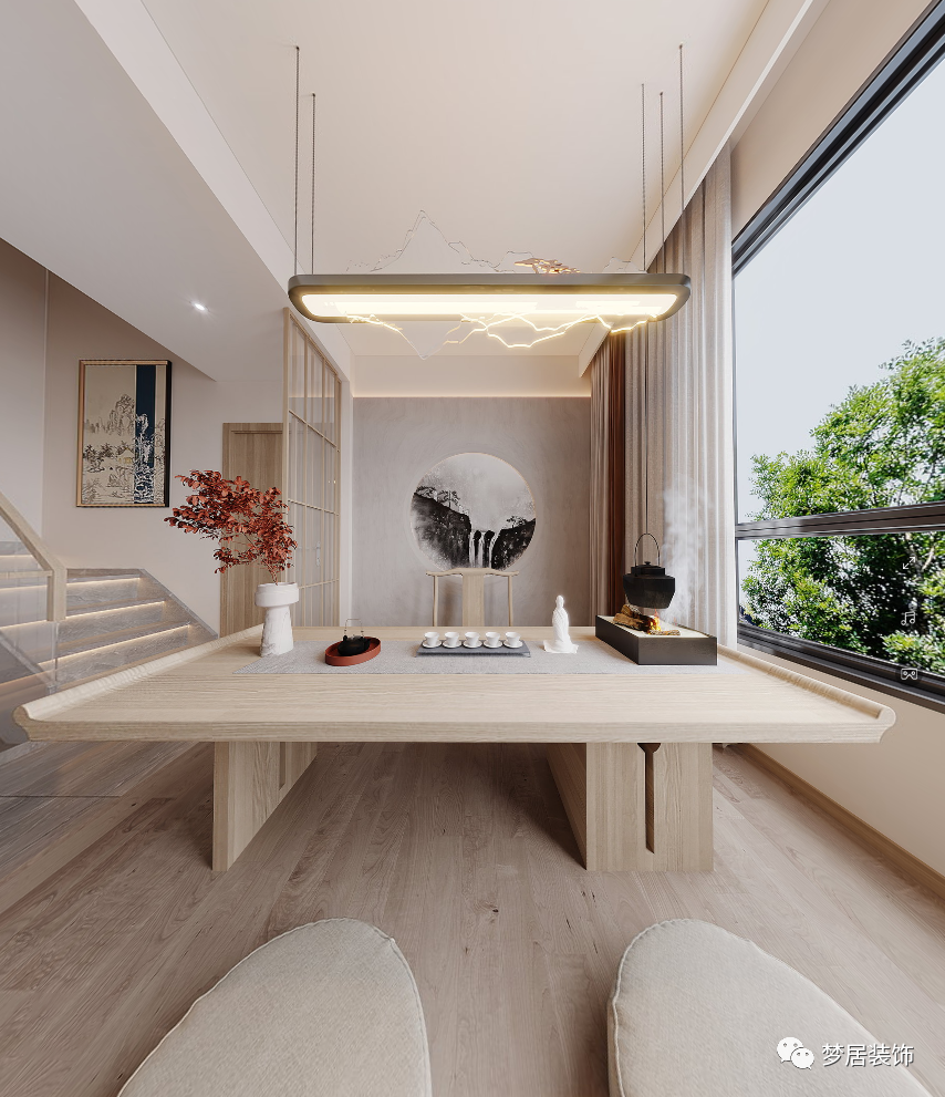 人與自然融合,將內心的平和和寧靜致遠引入室內空間,讓回家是一種回歸和放松的體驗,遠離城市的喧囂和浮躁。