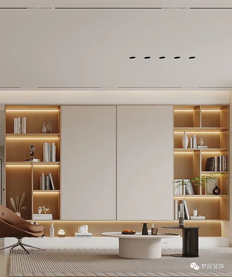 很多人都會(huì)給自己定看書(shū)計(jì)劃,但大多做不到,有了書(shū)墻熏陶,看書(shū)的頻率也會(huì)增加。如果客廳不放電視,書(shū)墻是很不錯(cuò)的選擇。讓電視墻變成書(shū)墻和收納柜,把書(shū)房和客廳的概念進(jìn)行結(jié)合。