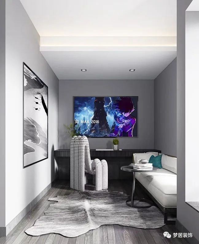 擁有一個(gè)獨(dú)立的影音室、電競(jìng)房應(yīng)該是不少人的夢(mèng)想吧,氛圍也是營(yíng)造中的重點(diǎn)。合理的燈光分布可以幫助營(yíng)造氛圍,有明有暗,烘托氣氛,無(wú)主燈照明可以選擇帶智能調(diào)光的筒燈或者吸頂燈,可以隨時(shí)調(diào)節(jié)明暗度。