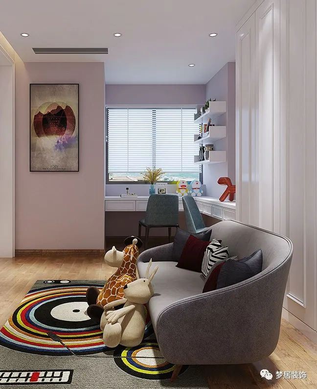 家有神獸,客廳的發(fā)揮考慮孩子成長(zhǎng)和教育,在設(shè)計(jì)方面有所偏重。低齡的孩子在上學(xué)前幾年基本上是以玩兒為主,客廳可以裝修成孩子的活動(dòng)區(qū),去掉大茶幾和帶棱角的家具,為孩子騰出更多活動(dòng)區(qū)域;孩子大了,教育是繞不開(kāi)的話題,除了玩樂(lè)之外,也要考慮興趣培養(yǎng),比如學(xué)鋼琴、畫畫之類的,這些空間也可以提前留出來(lái)。