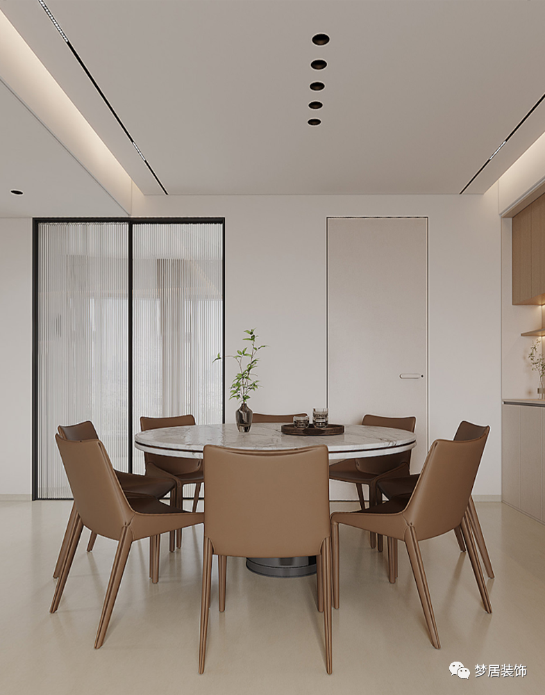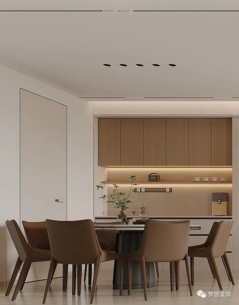 溫柔奶油風,微甜的奶茶色和醇厚奶咖色層層漸進,清淡透亮之中疊加變化,賦予了整個空間濃郁而純粹的香甜優雅,搭配綠植,溫潤而高級,十分療愈。