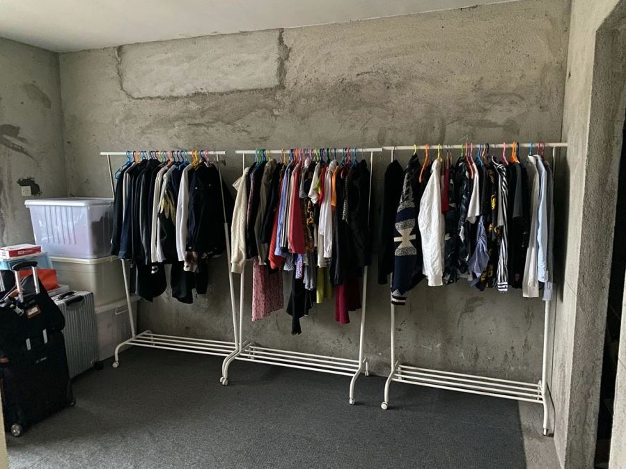 房間也不失溫馨舒適,用磚頭壘起的床架,上面放個床墊,再套上四件套,溫暖舒適,為了收納還配了幾個白色的鐵皮柜。大部分買的東西都是不怎么值錢的,以后也方便重新裝修拆除。