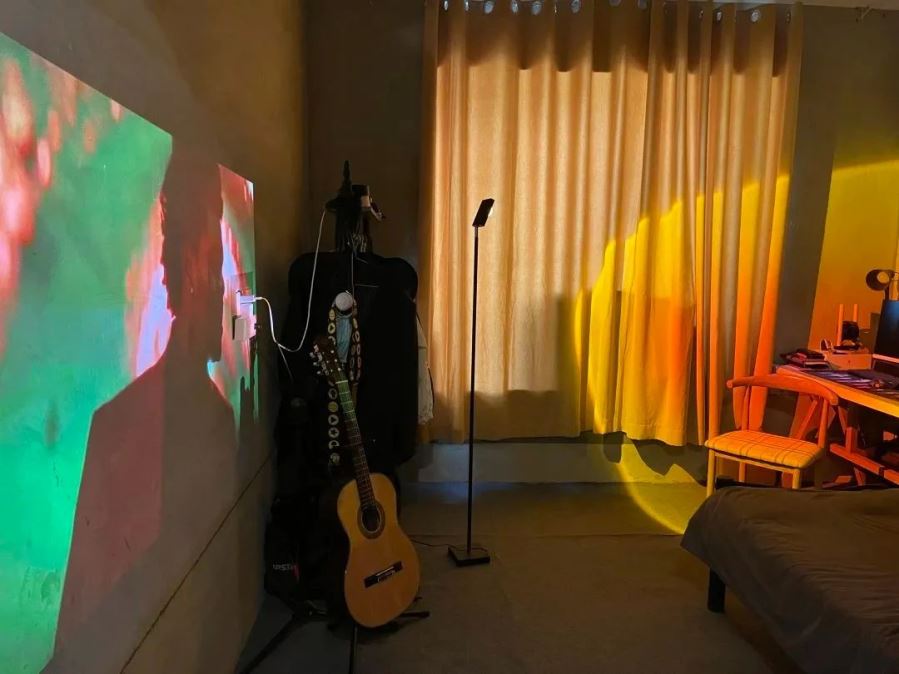 雖然是毛坯房,也沒有向審美妥協,自己的小家也要按照自己的喜好一點點來布置,把生活打理得井井有條。餐廳有簡易餐桌椅,做了衛生間,客廳還安排了投影,能滿足最基本的生活。