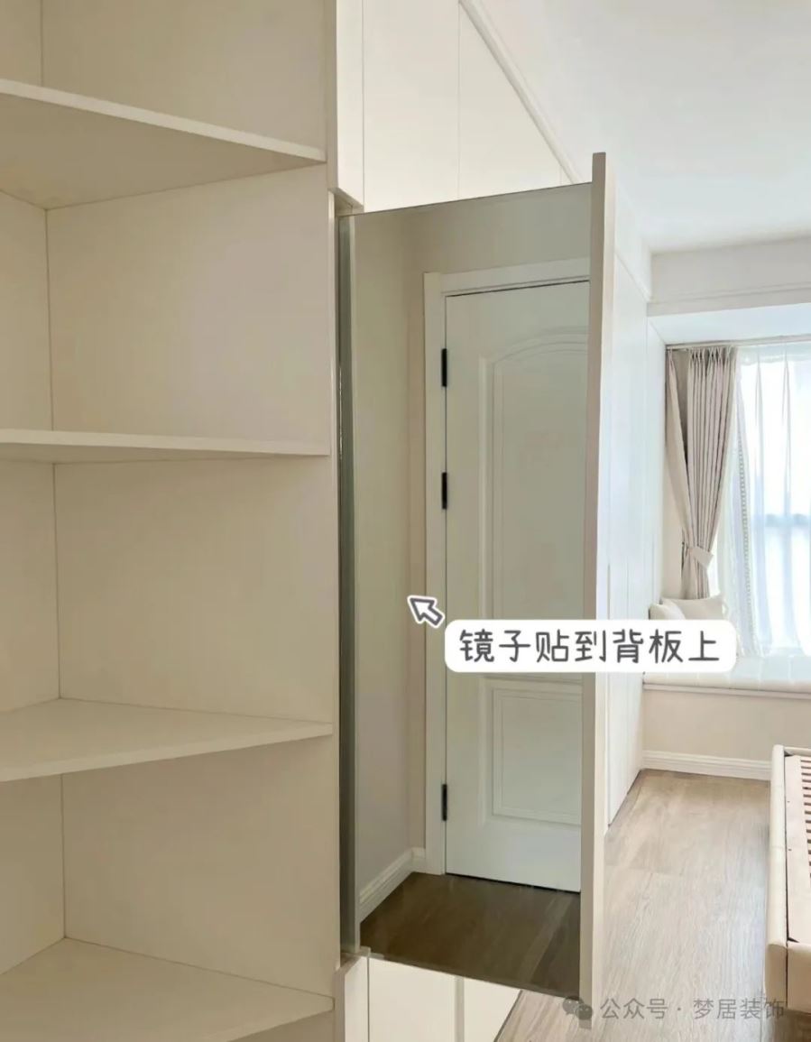 平時拿衣服就開柜門,照鏡子不用走來走去。而且鏡子可以多角度旋轉,關上門后,干凈清爽,也不用擔心壞了風水。