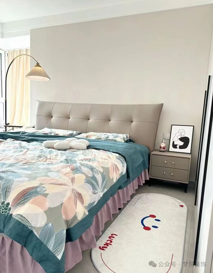 在床側邊鋪上一塊編織的透氣吸汗的棉麻小地毯,這樣就算光腳踩在上面,也不會感覺涼了,腳感也很舒適。