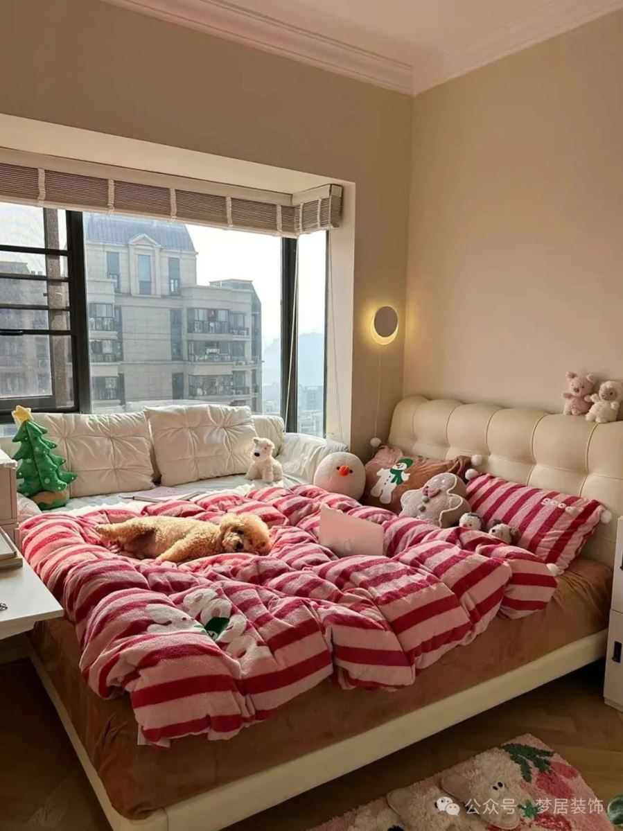 建議:盡量別把床頭擺放在窗口,實在喜歡這樣的布局,可以選購一個厚實的床靠背遮擋。睡眠時可以將遮光性比較好的窗簾拉上,來擋住寒風和光線,在心理或視覺上也會更舒適的感受。