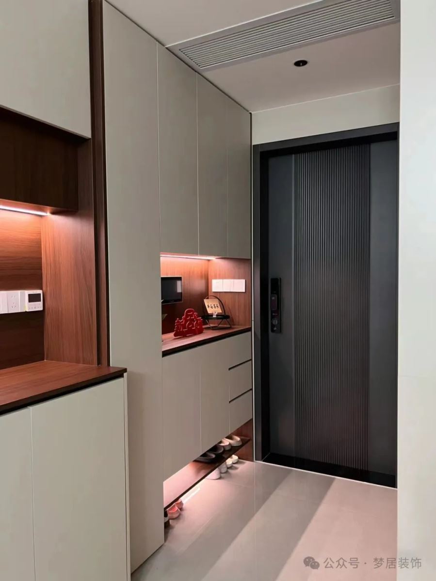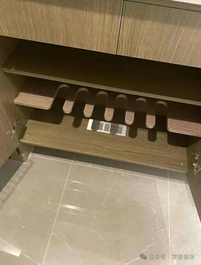 大多數(shù)家庭做玄關(guān)鞋柜底部都會(huì)懸空用來收納高頻使用的鞋很方便。