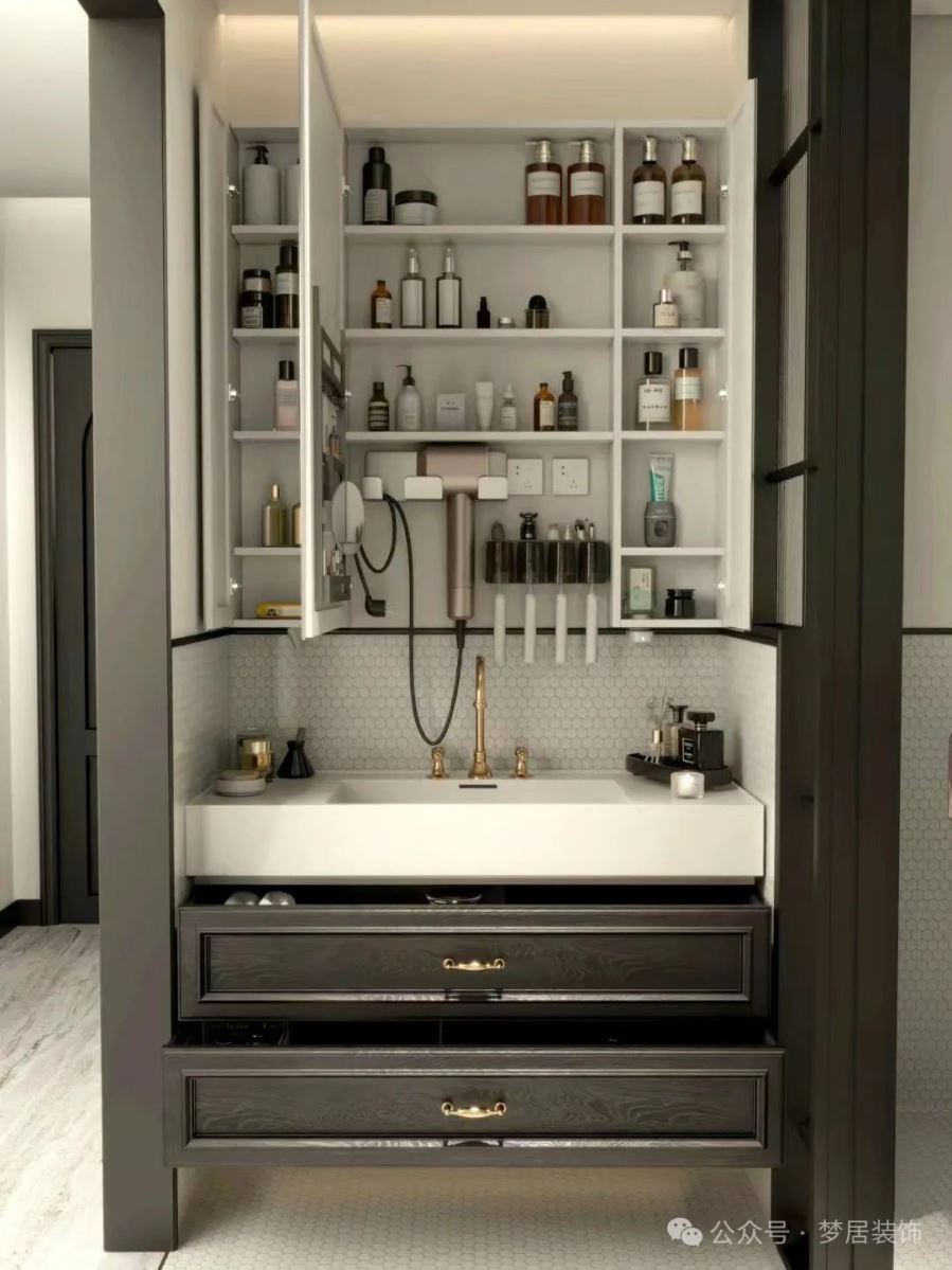 一般戶型的衛(wèi)浴空間都不算太大,空間真是太寶貴了!雜物多擺在明面又亂糟糟的!在浴室鏡柜里加裝插座,吹風(fēng)機(jī)、電動(dòng)牙刷、剃須刀等小電器使用、充電就太方便啦。