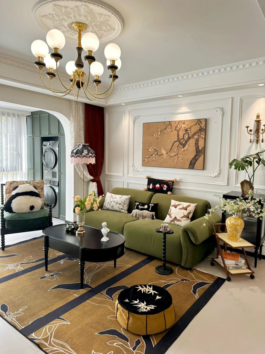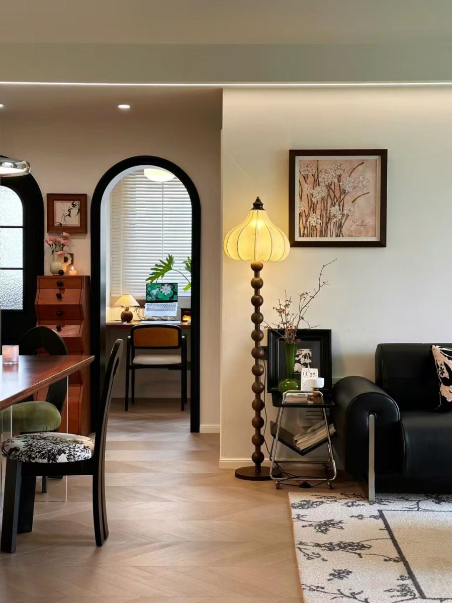 中古風(fēng)的軟裝元素則注重造型簡(jiǎn)約和家具精致的線條感。