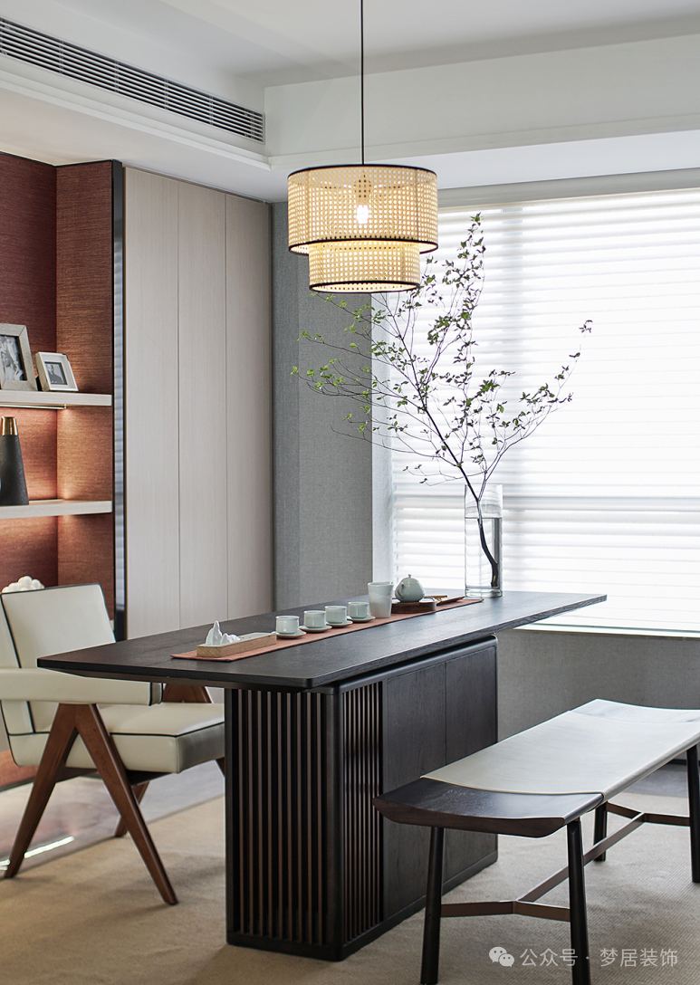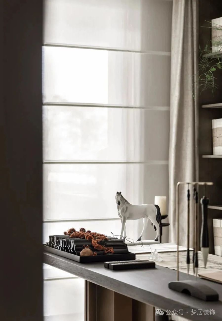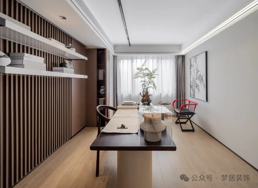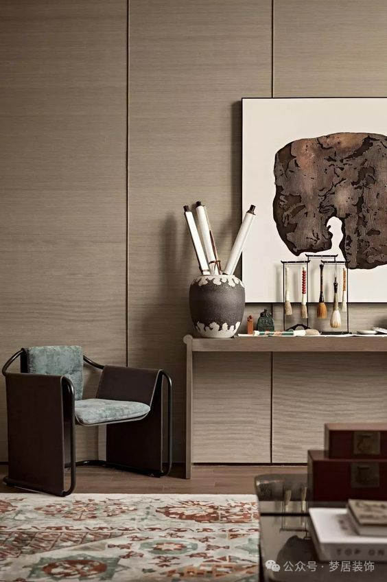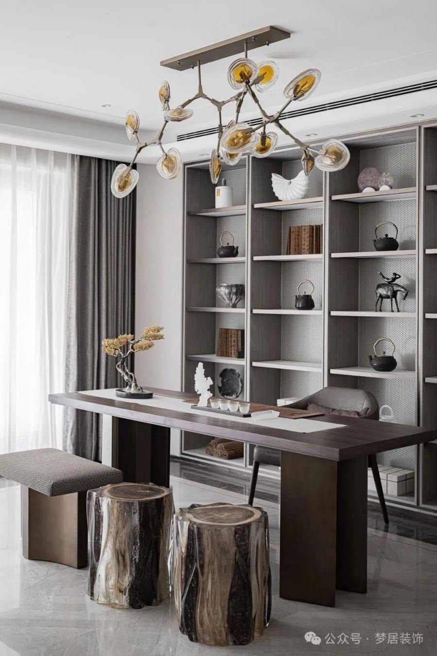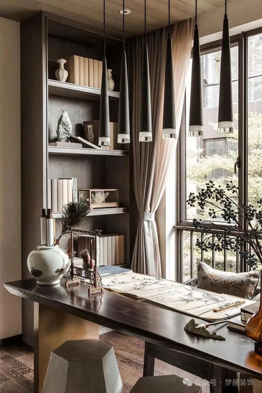 以筆墨元素衍生,提升整個空間的藝術格調,讓中式韻味變得更加飽滿,極大地增加書房的文化氣息,又顯底蘊和品位。