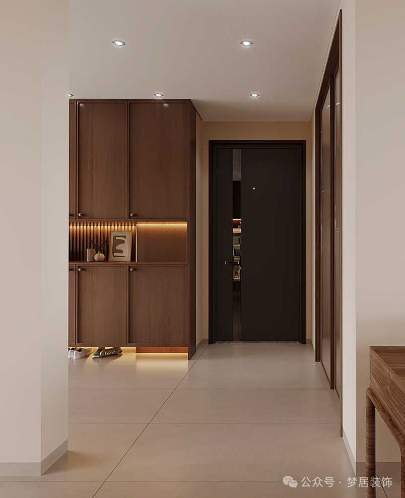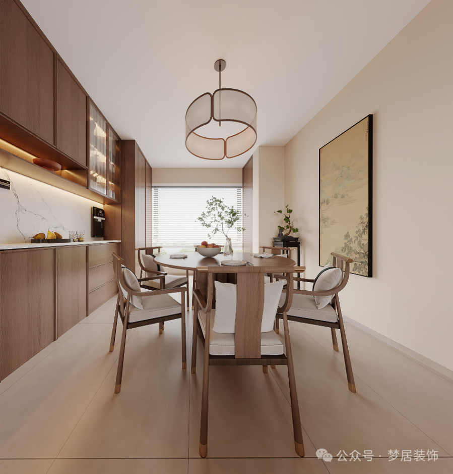 相同的材質、色調的巧妙組合奠定了整體空間的基調,每一處都散發著獨特的魅力。輕居的舒適感與中式禪意的悠然氣息相互交織,為居住者帶來舒適的體驗。