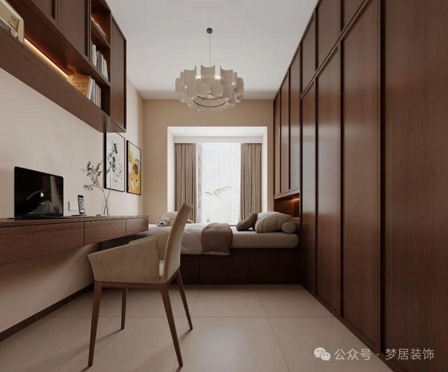 清風輕撫,挽風入夢。在溫馨的臥室空間里,以軟裝營造出和諧而富有層次的視覺效果。清晨,晨光灑落窗臺,新的一天從寧靜而溫馨的時刻開始,訴說著生活的溫暖與甜蜜。