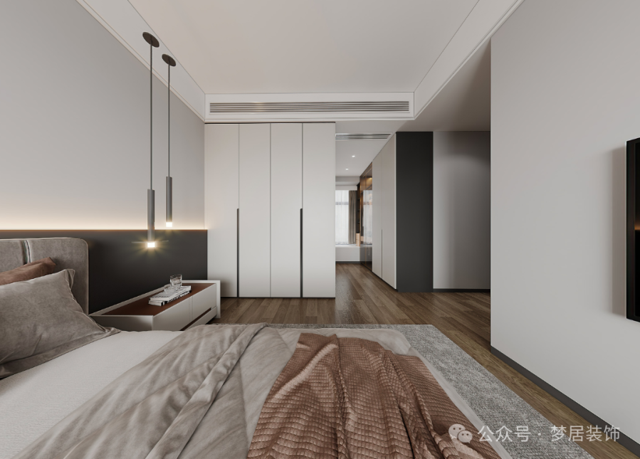衛生間過道較寬闊,靠近衛生間墻面全部打上衣柜,收納功能滿分!臥室不管是功能性還是美觀性都得到滿足,有效提升居住的舒適感。
