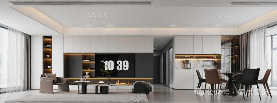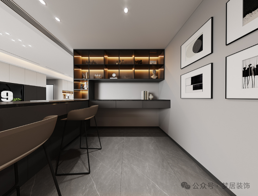 為滿足業主對休閑與閱讀空間的需求,我們精心設計了一個開放式的休閑區,開放式的布局使得空間利用更加靈活,同時增加家庭成員在共享空間中的陪伴時間。