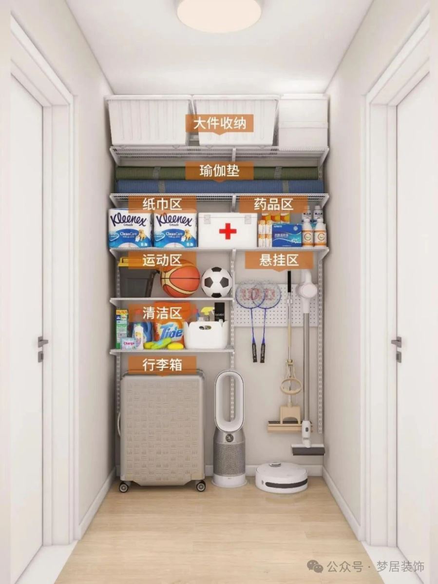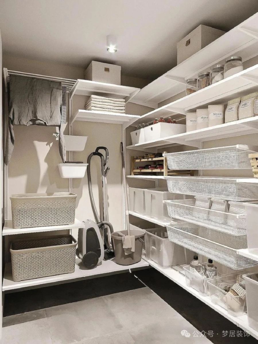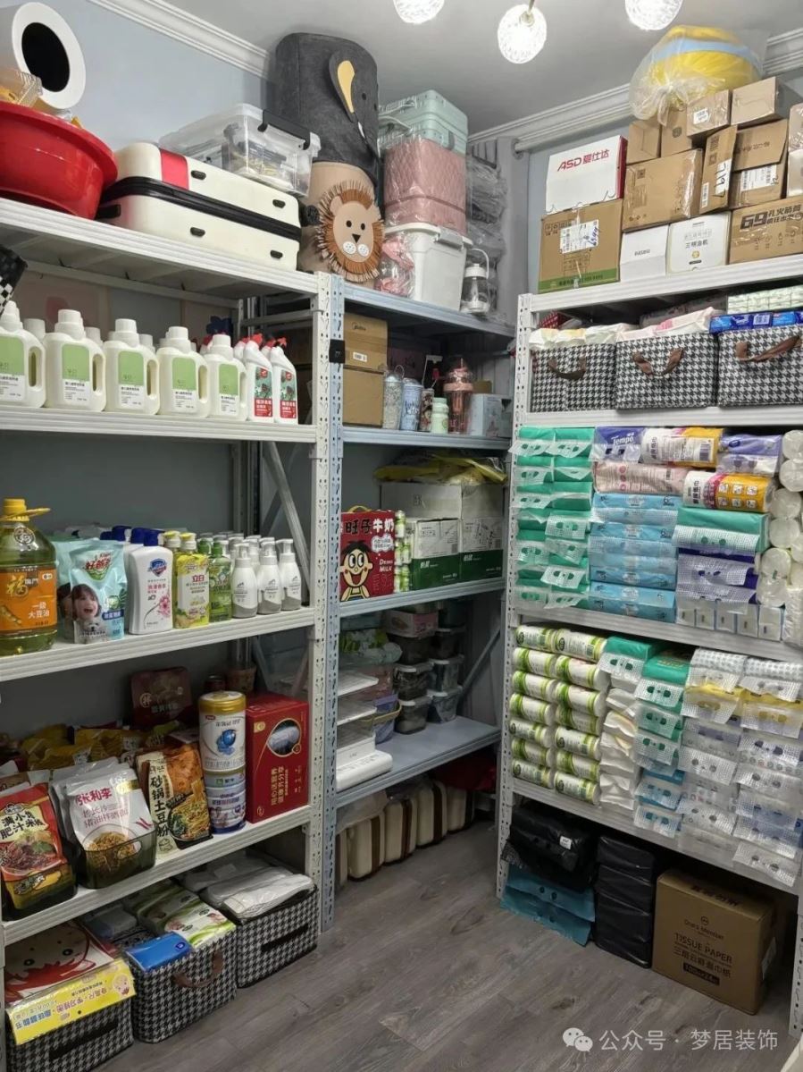 布局更加可以細分一下,分門別類地規劃存放區,如清潔工具專區、清潔劑專區、囤貨區等等,整潔干凈。