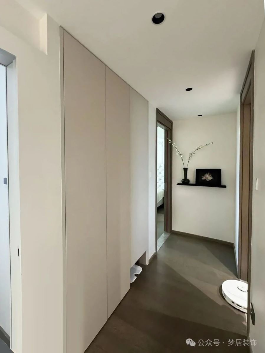 走廊盡頭不一定要掛畫,也可以設置一個家政柜,一點也不顯突兀,柜子的厚度可以根據家中實際需求來定,既實用又美觀。