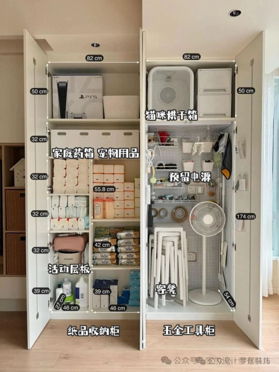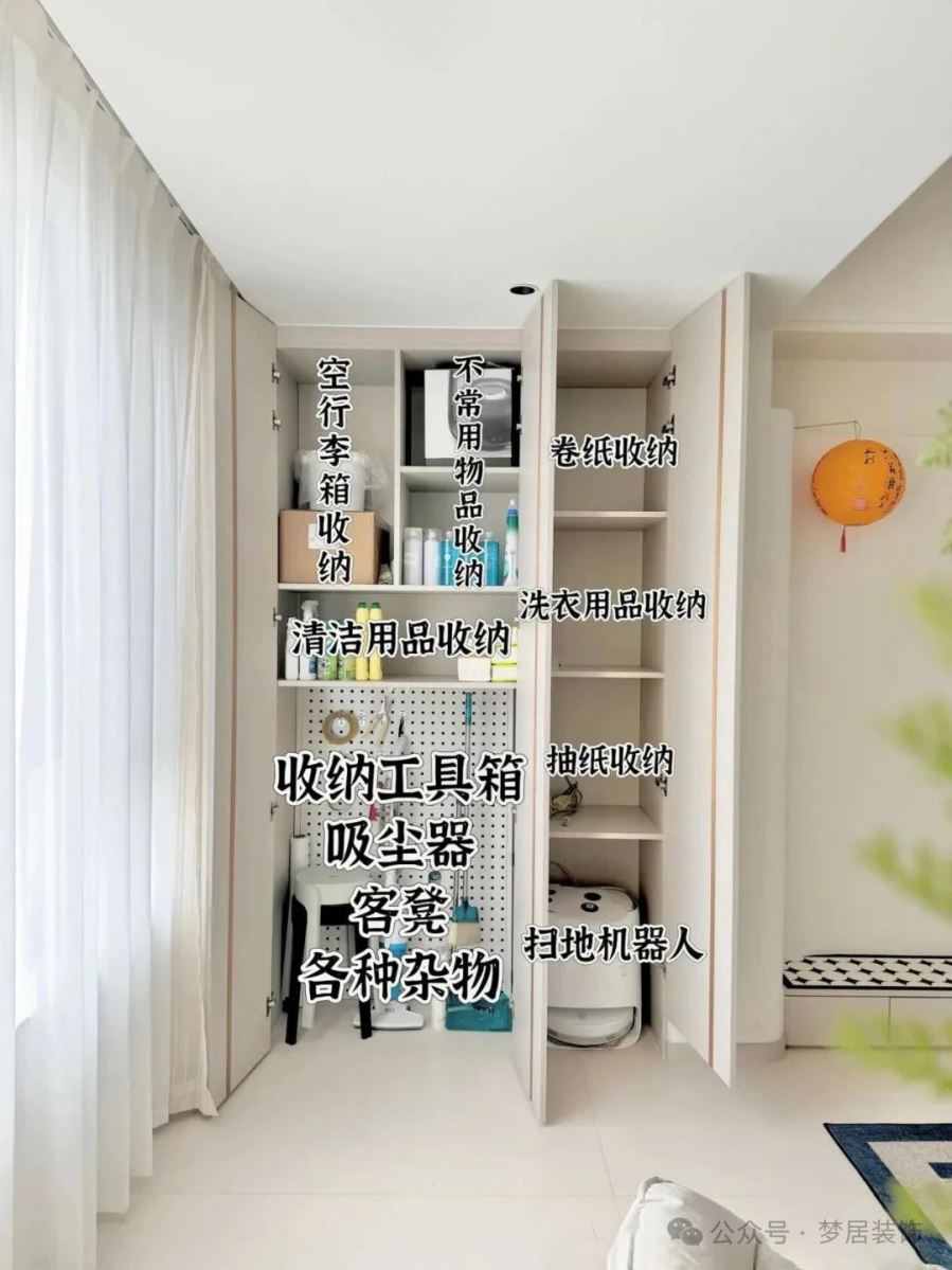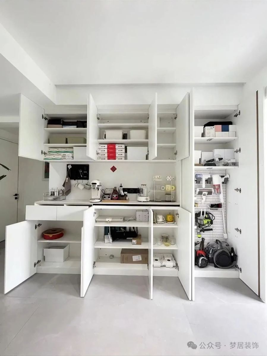 定制一個家政柜,用于收納日常清潔用品和大件家居用品,再配合收納盒和洞洞板進行分類,作用太大了,又方便又好用,還能讓家變得更干凈整潔。