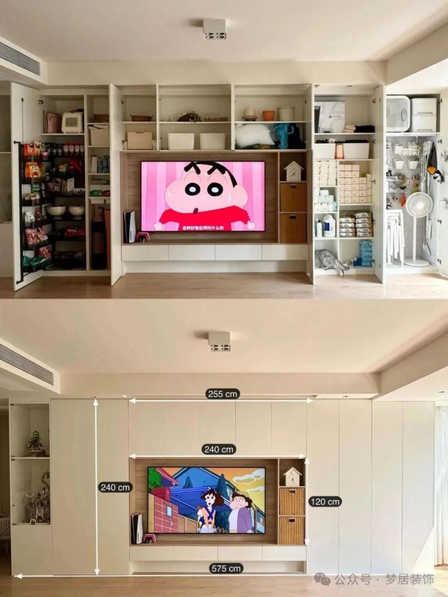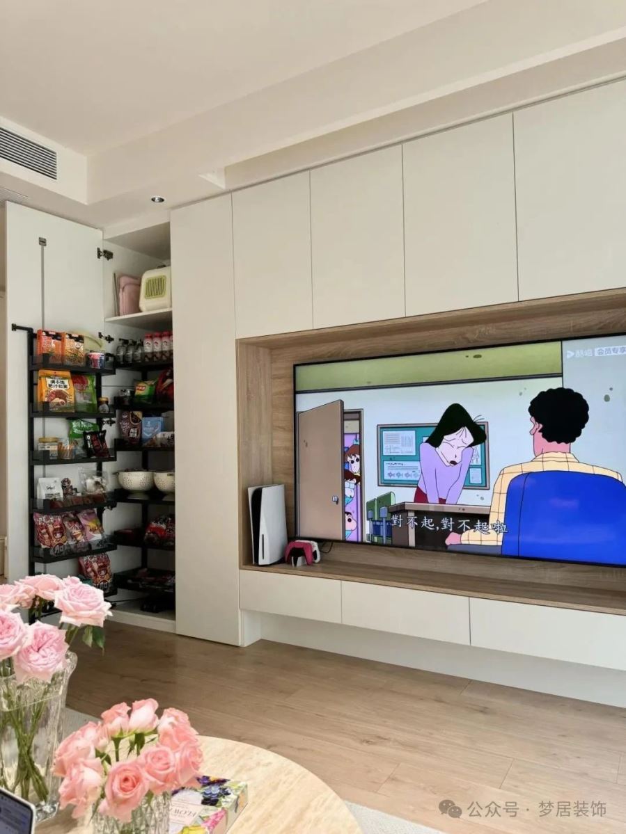 最重要的是,柜門一關,就是一個干凈、整潔的電視背景墻。