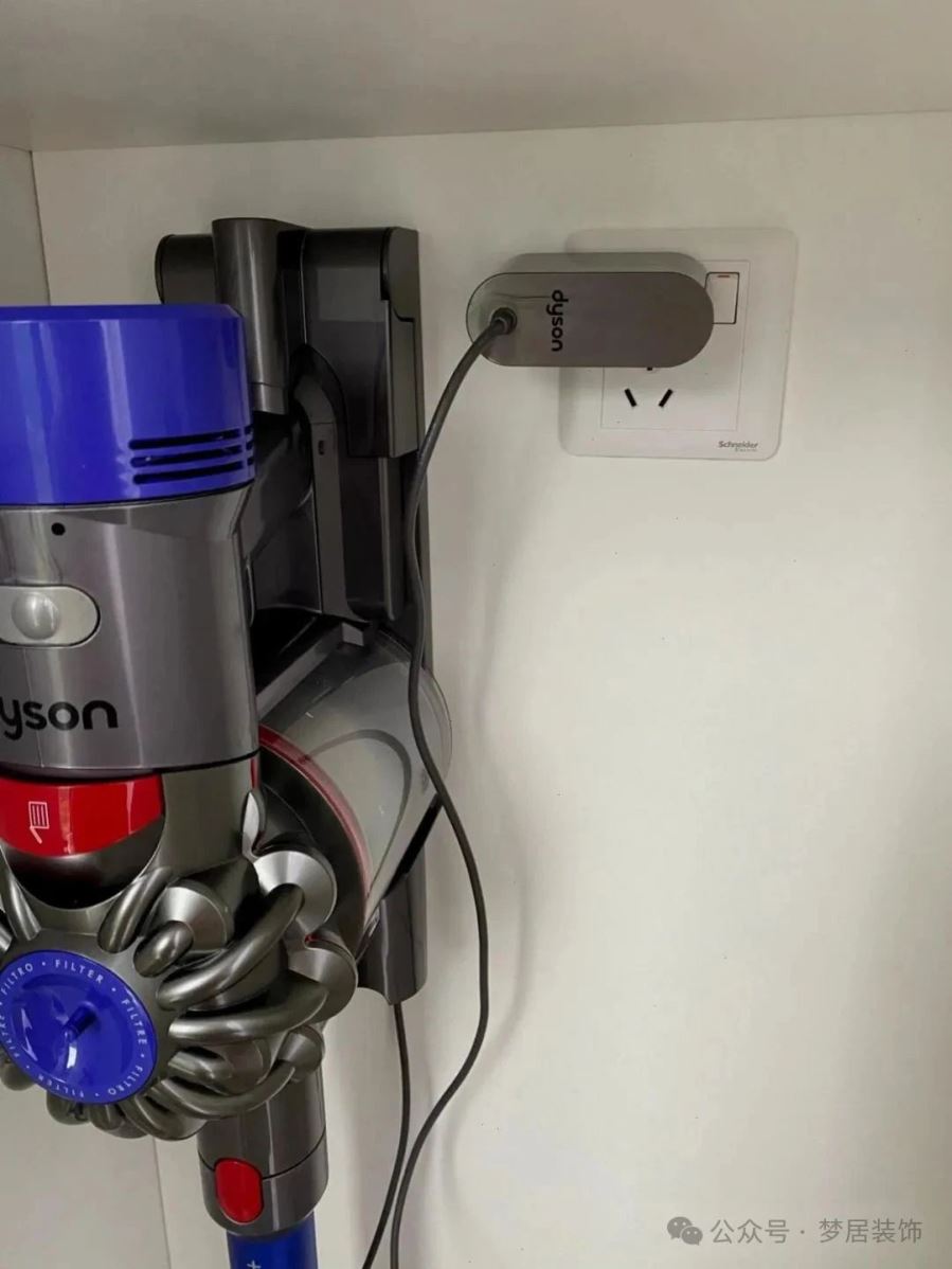 記得預留插座,方便吸塵器、掃地機器人等設備充電。掃地機器人放置區不設底板,方便機器工作進出。