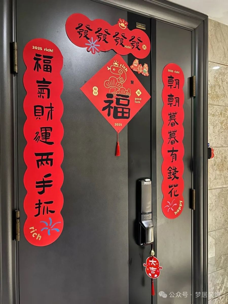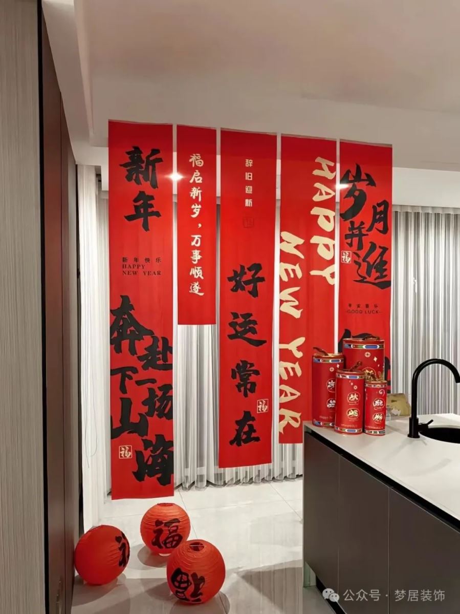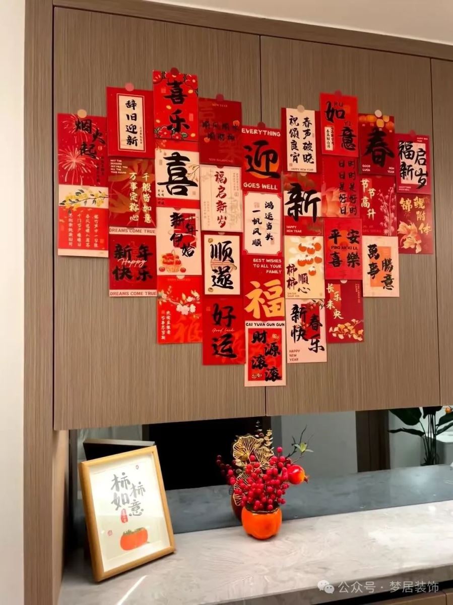 福字牌與小掛牌:紅包掛在樹枝上、小對(duì)聯(lián)貼在墻上,這些小巧的裝飾品既能凸顯年味,又為家居增添一份喜慶感。