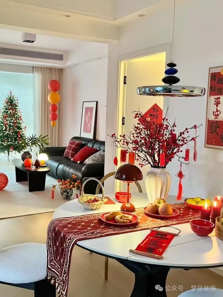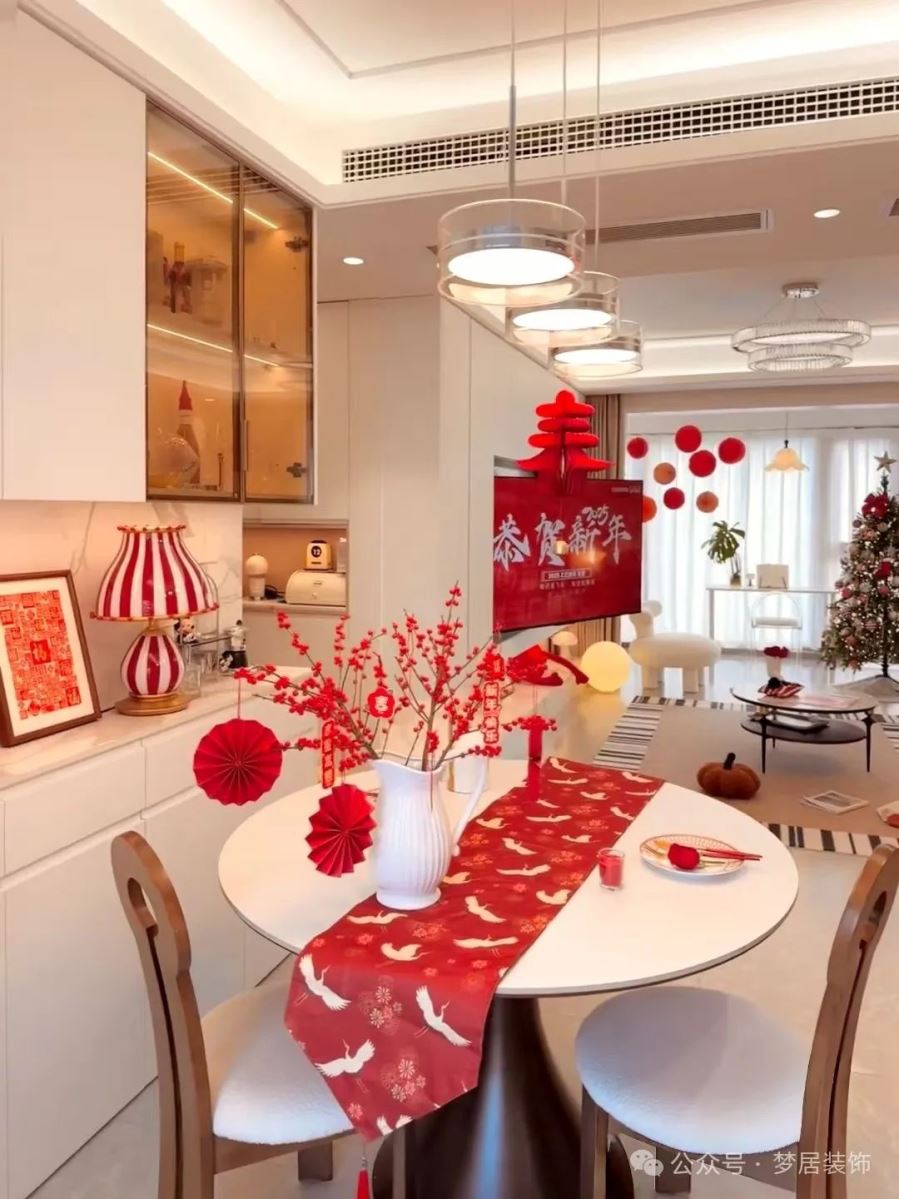 可以把桌布、靠枕等軟裝元素,換成喜氣洋洋的紅色,應(yīng)景的同時(shí)不破壞整體設(shè)計(jì)感,讓家充滿歡快且活躍的格調(diào)。